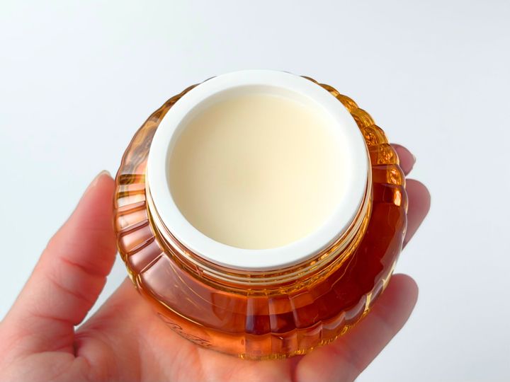 熱によるフィックス力が高い分、量が多すぎると余ったバームが手のひらに密着してしまうので、パール粒くらいの少量からまとうのがよし。ツヤ感が物足りなければ同じように重ねてオイルによる薄膜レイヤードを意識するのが、ヘルシーなウェット感を演出するコツです。