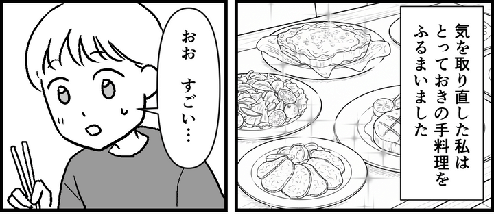 私は気持ちを切り替えて、ユウトのために時間をかけて作った料理をテーブルいっぱいに並べました。久しぶりの帰省だからこそ、できる限り喜んでほしいという思いが強く、つい張り切ってしまったのです。ユウトの驚いた顔を見て、少しだけ安心しました。