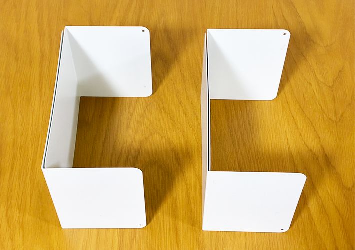 用意したのは、普通サイズでスチール製のブックエンド4つです。2つで1セットとして使います。
