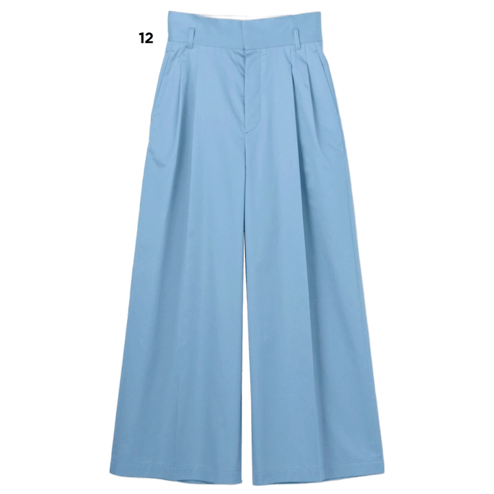 I 色でいえば、サックスブルーもいっぱい出てますよね。アンクレイヴのタック入りのワイドパンツ、クリーンに白シャツとかと合わせたい。