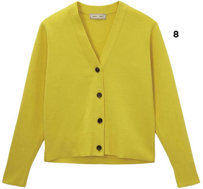 Y 私は今回の展示会で一番目が行ったのはカラーかな。ロンハーマンの展示会ではレモンイエロー❽を推してるって言ってた。その展示会でスタイリストの金子綾さんに会ったんだけど、今年はピンクとかレモンイエローがラッキーカラーだって占い師さんが言ってたらしいよ。私も今季は少し色ものを買うつもり。イエロー以外にも、ル フィルで見たピンクのシャツ❾も素敵だった。ちょっと丈が長めで、シャツとしてはもちろん、羽織りとしても使えるし、ル フィルって使いやすさとシルエットがちょうどよくて私好きだな。
