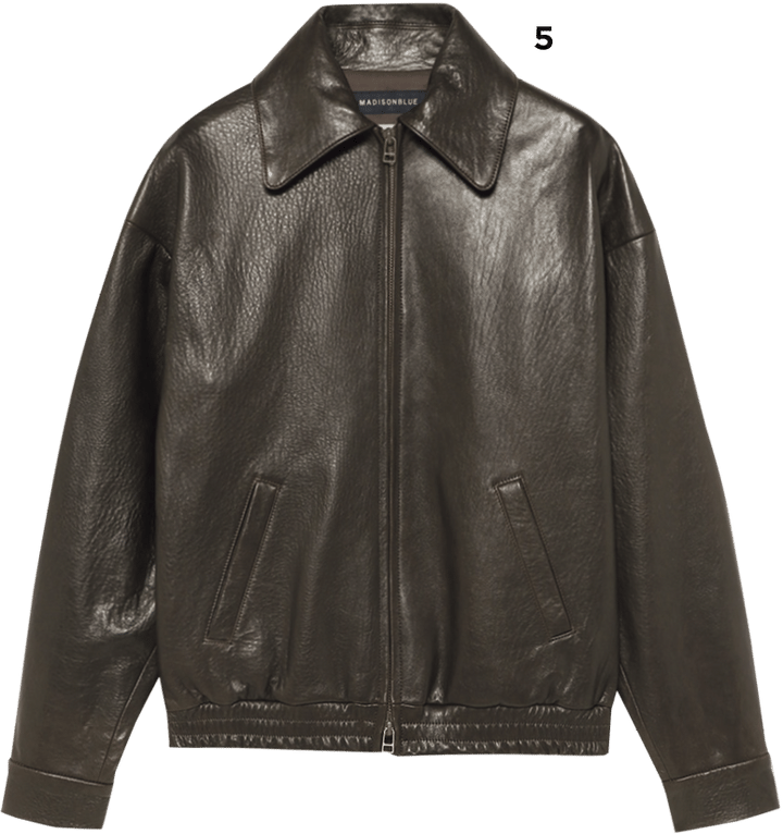 艶やかなブラウンのレザーブルゾンはどんなスタイルにも◎。