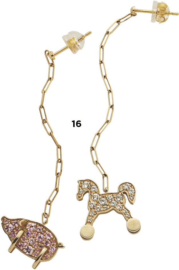 K 馬モチーフいいよね〜。ちなみに私は午年っていうのもあるし、マユコのジュエリーが気になってる。天然石が埋め込まれた繊細で大人っぽいデザインなんだけど、モチーフが馬とか豚とかキャッチーなの♡ こういうのをさり気なく着けてたら素敵だし、何より運気上がりそうじゃない?