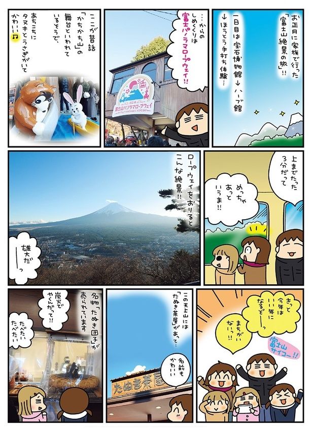 おっぺけぶり健在の3姉妹と富士山を望む絶景旅に出かけ、開運を求めて夫婦で家族で全国を駆け巡る。「ご当地名物めし」をめぐる旅では食いしん坊ファミリーの本領発揮! 超インドア派だけど、おいしい&かわいいもの、楽しくて新しい体験が大好きな松本ぷりっつ夫婦の、毎度おなじみ爆笑漫才旅をお楽しみください。
