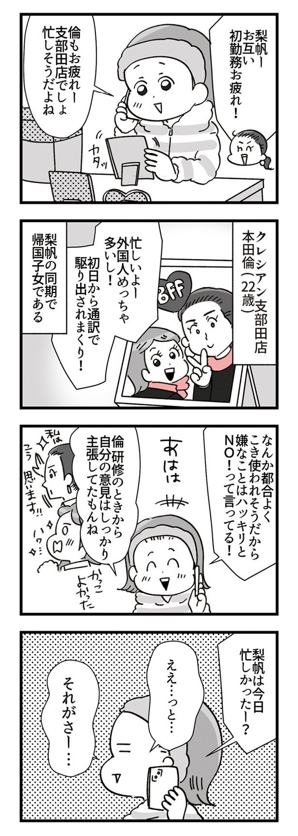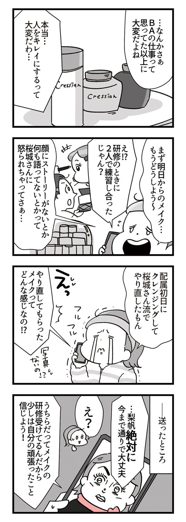 3. 先輩からの教育に疲弊する新人美容部員。同期と電話して気持ちをリセット!/デパコスカウンターは今日も修羅場です⑨