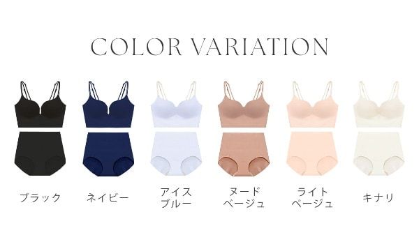 商品名:ひびかないブラ MiSEL-ミセル- シームレス ノンワイヤーブラ&ショーツ 価格:<ブラ単品>2,980円、<ショーツセット>4,280円 カラー:ブラック、キナリ、アイスブルー、ライトベージュ、ヌードベージュ、ネイビー サイズ:S, M, L, SG, MG, LG, XL 詳細:https://x.gd/JG8mk