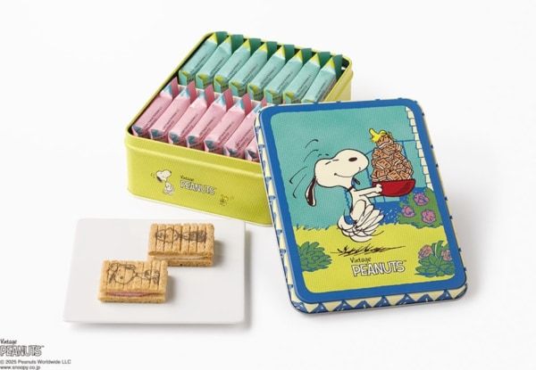 側面までスヌーピーと仲間たちが描かれ、隅々までじっくり見たくなるデザインに仕上げました。お菓子を食べ終わった後も飾ったり、小物入れにして楽しめます。
