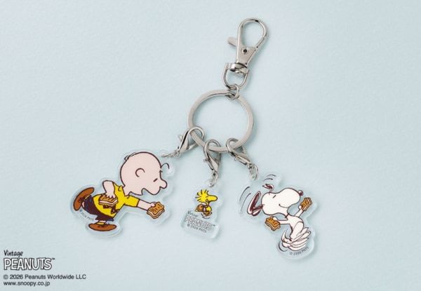 スヌーピー、チャーリー・ブラウン、ウッドストックの3種がセットになったアクリルキーホルダー。「2WAYトートリュック」につけたり、それぞれ取り外して使えるので仲良しのお友達とシェアしても楽しい♪