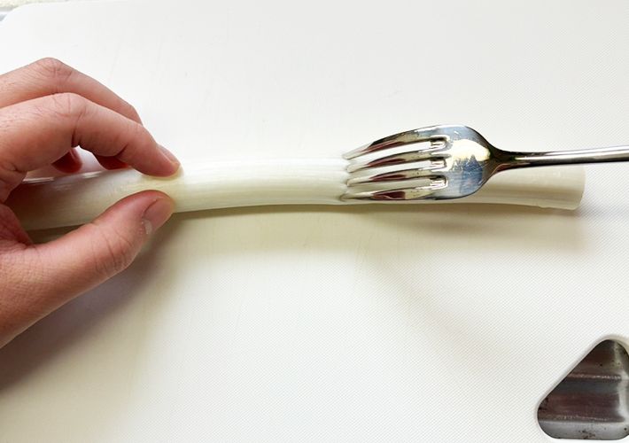 手順1:長ネギにフォークを刺し、スライドする