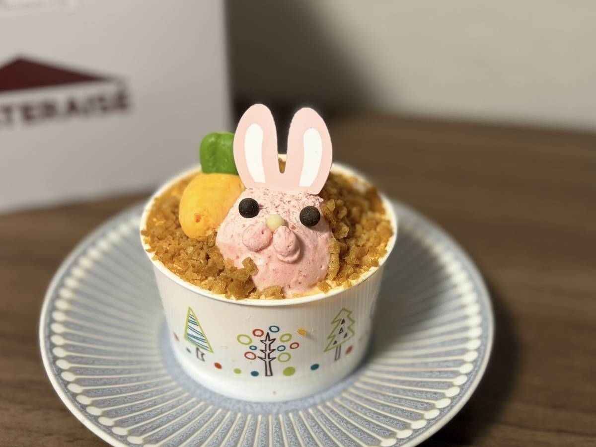 今回購入した「イースター うさぎのキャロット畑」は、ピンクのうさぎとにんじんがのったカラフルなカップケーキです。