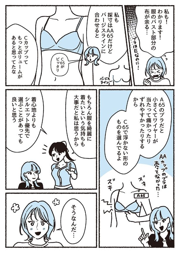 「せっかく買った服なのに、着てみるとシルエットがいまいち」「肩がこる・疲れる」「姿勢が悪い」そんな悩みは下着で解決できる! 下着よりおしゃれやメイクにお金をかけるアパレル店員・のばらと大きい胸が悩みの事務職・ゆり。下着選び初心者ふたりのお悩みを、元下着販売員で下着オタクな著者のちーちょろすさんが解決する『悪いのはスタイルじゃなくて下着でした 一生モノの下着の教科書』。