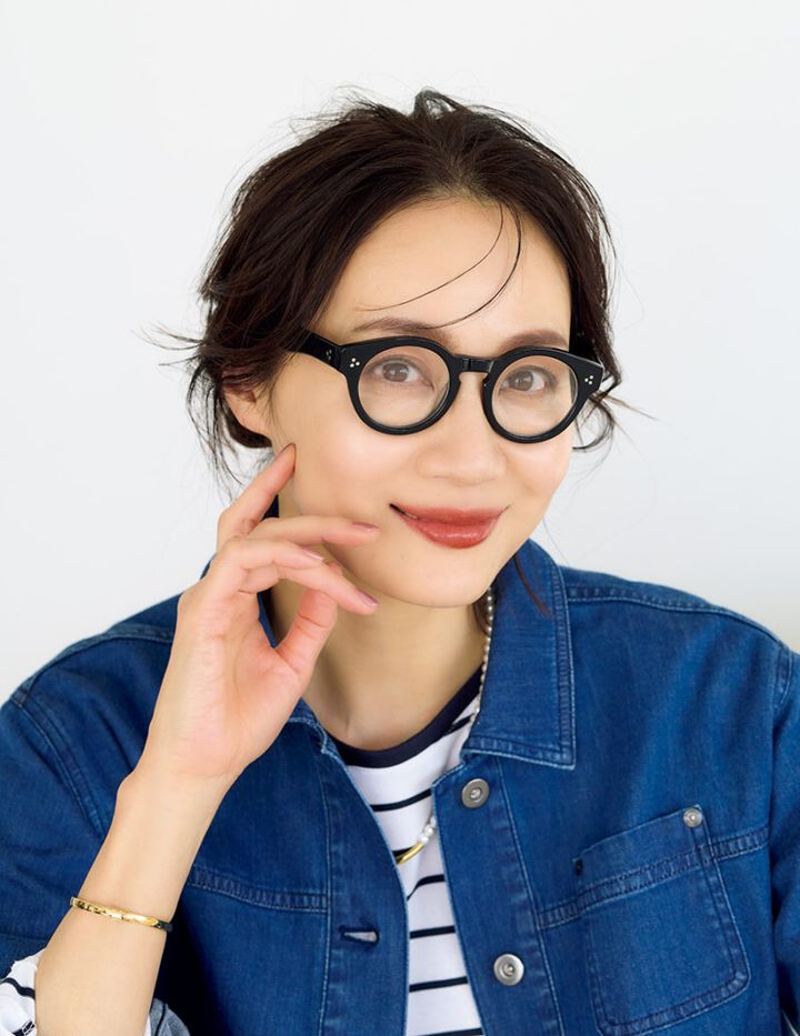 「〝顔の上にのる〟という意味で、めがねはコスメと一緒。スッピン隠しとしてめがねをかける人もいますが、ノーメイクでリップだけつけるのと同じで、ちょっと唐突に。大人はメイクをした方が断然素敵に見えます」と長井さん。