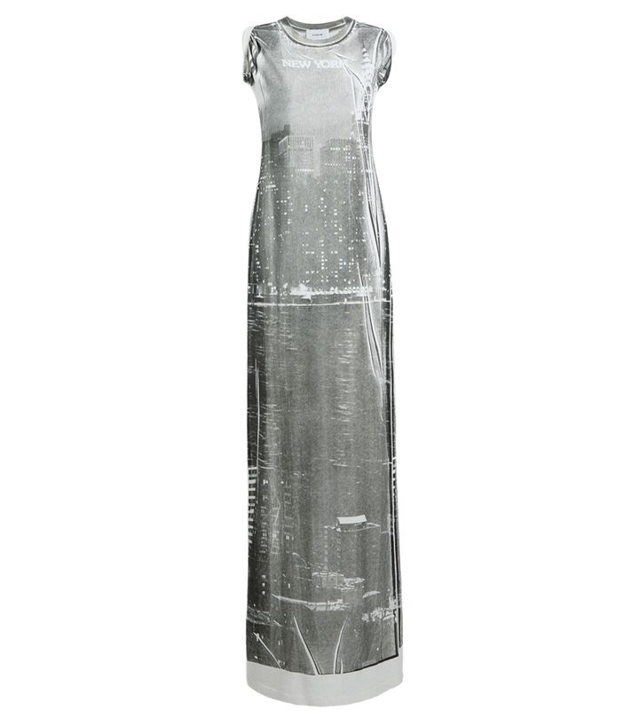 ニューヨークの風景をモノトーンでプリントしたストーリーのあるデザイン。ドレス¥46,200
