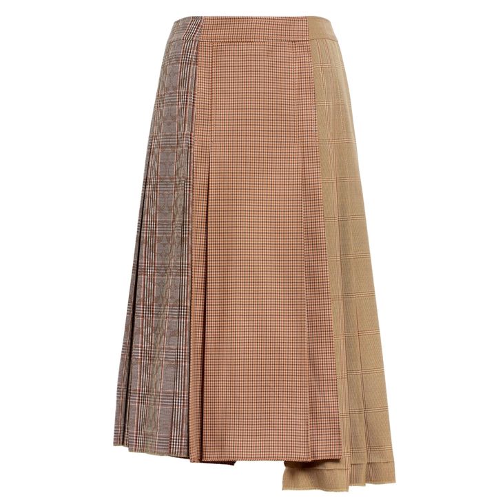 硬派なセットアップを、趣向の異なるチェック柄で愛嬌たっぷりに。ゆらめくプリーツも必須。ジャケット¥82,500