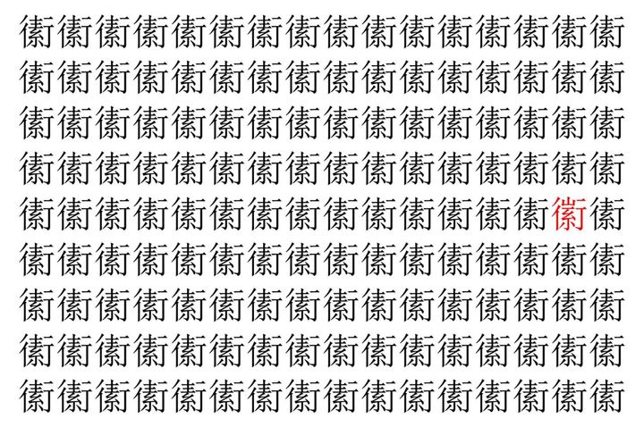 画像の中には、「䘘」という漢字が縦に9行、横に16個並んでいます。 全部で144個となりますが・・・、そのうち1つは「異なる漢字」となってますよ!!