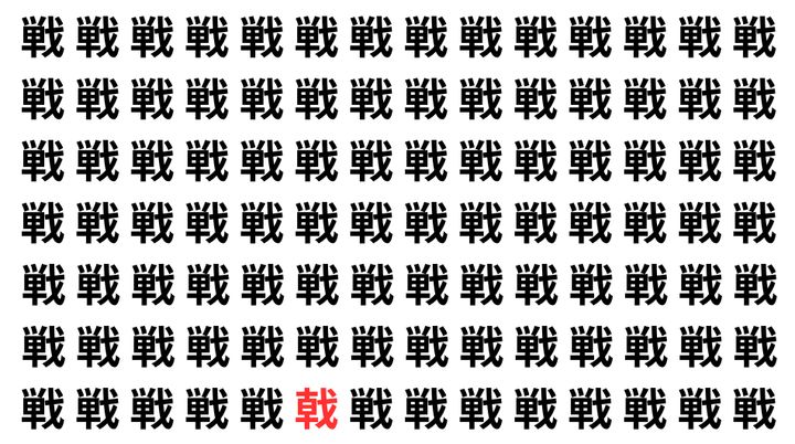 たくさんの「戦」の中に、よく似た別の漢字が1文字だけ隠れています。