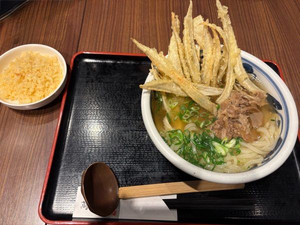 その他、春の限定メニューとして ◎春野菜3種の天ぷらぶっかけ(冷) ◎あさりの味噌バターうそん(温) ◎牛すじのカレーうどん(温) ◎純米吟醸『せりの塩むすび』 があります。