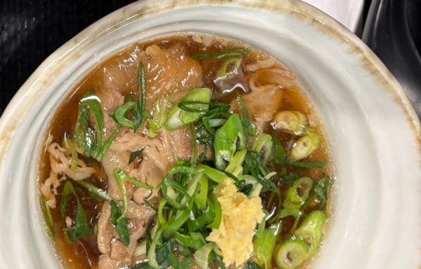 連れはいつも肉つけうどんを注文します。麺は冷麺ですが、暖かい肉汁に付けて美味しそうに食べます。