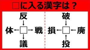 【漢字パズル】反□、□戦、□議、□体 □に入る漢字は何…?