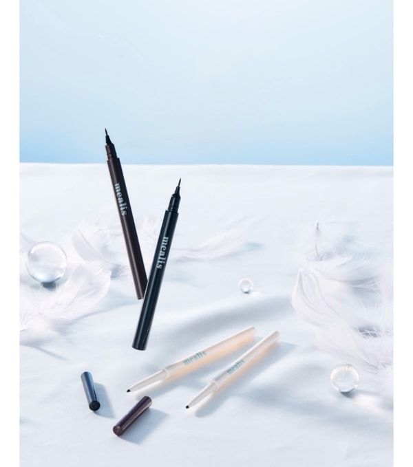 ●メアリス リキッドアイライナー 初心者でも描きやすい極細フェルトタイプのリキッドアイライナー。ウォータープルーフ処方でにじみにくく、目尻の跳ね上げや目頭の切開ラインもきれいに描けます。