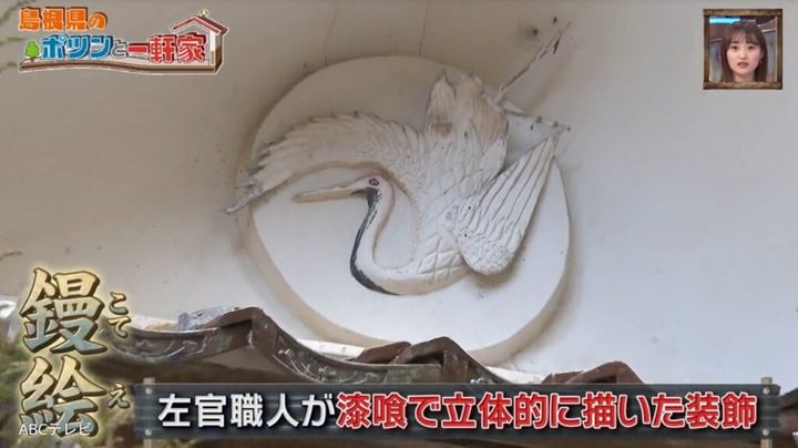女性は現在、訪問介護の仕事をしながらこの“ポツンと一軒家”に一人で暮らしている。「終活中」と言う彼女は、立派な漆喰作りの鏝絵のある蔵や大きな納屋を自力で解体している。家の中を案内しながら、玄関では「おじいさんが電話の株券を買うて連絡所をしていたんです。電話が鳴ると『どこの家の人あてですか』ときいて呼びに行っとったんです。昭和50年くらいまでやっていましたね」、仏間では「ここで葬式をして」とこの家の歴史を語ってくれた。石見神楽の鬼の面もある。島根県西部・石見地方に伝わる日本神話を題材にし、日本遺産にも認定された伝統芸能で、父が舞っていたという。