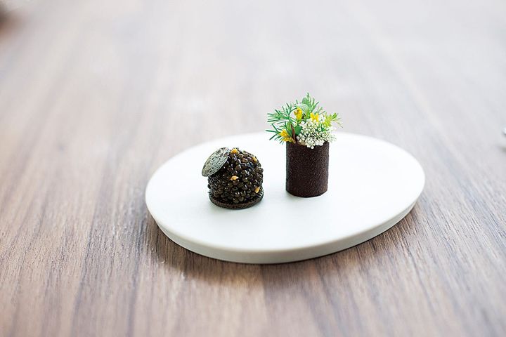 右は伝統的なサラダ、左はマッサマンカレーのペーストにキャビアを。 Hearst Owned