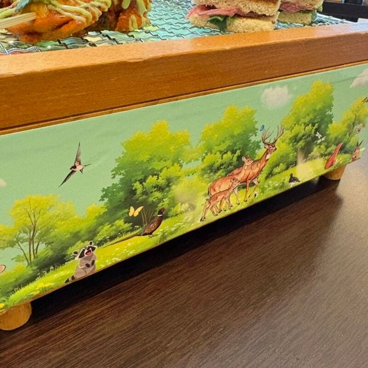 森の動物モチーフが愛らしい、木箱スタイルでサーブ