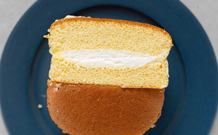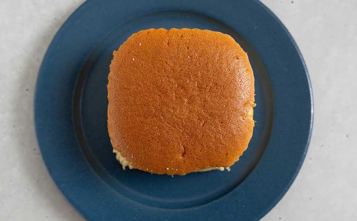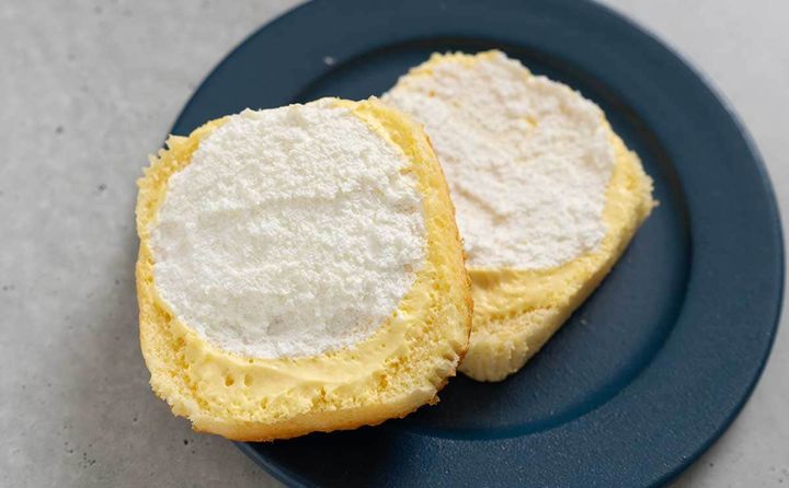 次は半分にカットして断面をチェック。スフレ生地に厚みがあるためクリームが少なめに見えるかもしれませんが、実際はたっぷりと入っています。