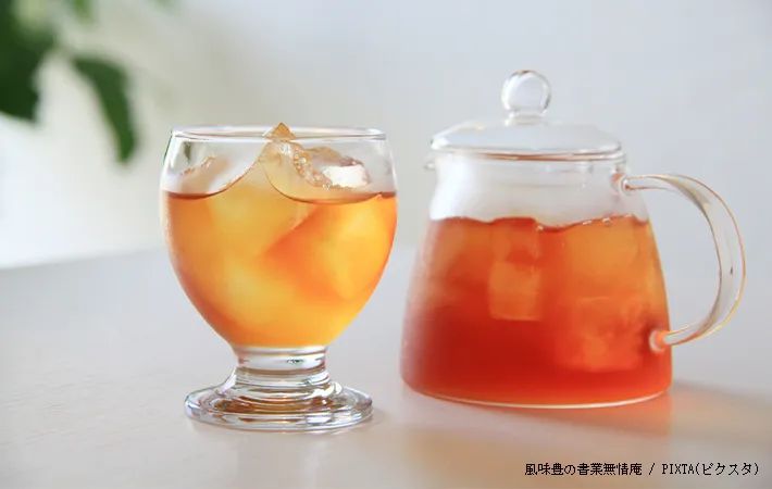 通常希釈して飲用するフルーツビネガーをアイスティーで希釈していただくと、簡単にフルーツビネガーティーが楽しめます。さらに無糖炭酸を加えていただくのもおすすめ。