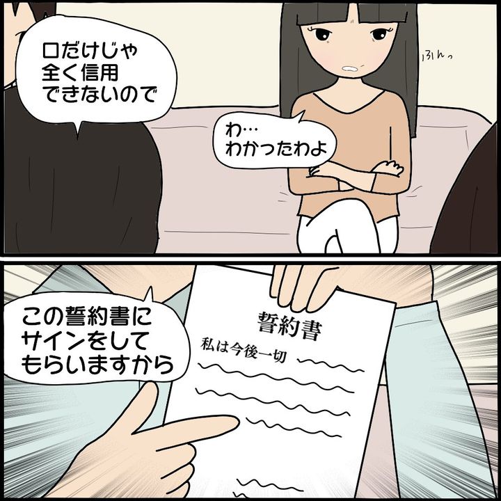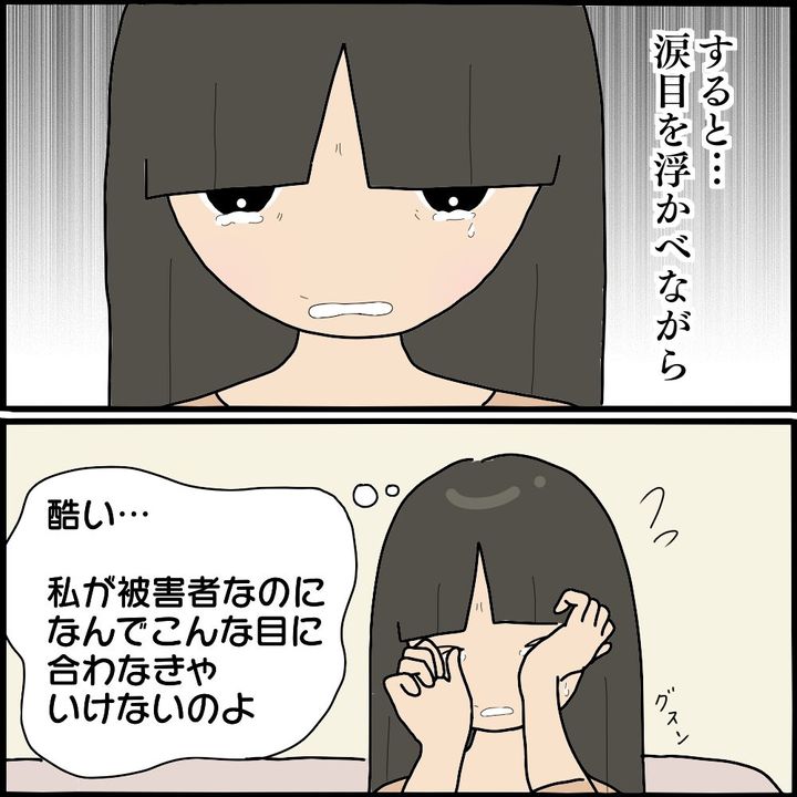 ついに怖美を捕まえ、話し合いの場を設けることができたK代たち。しかし怖美は謝罪することなく、「全てK代が悪い」と主張を繰り返します。支離滅裂な言い分にK代夫婦は言葉も出ません。