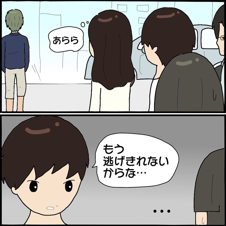 怖美の居場所を突き止めたK代夫婦と元夫は、その場所で張り込むことに。しばらくすると男と出てきた怖美、声をかけると一気に顔色が変わり…。一緒に住んでいる男にも嘘がバレ、窮地に追い込まれます。