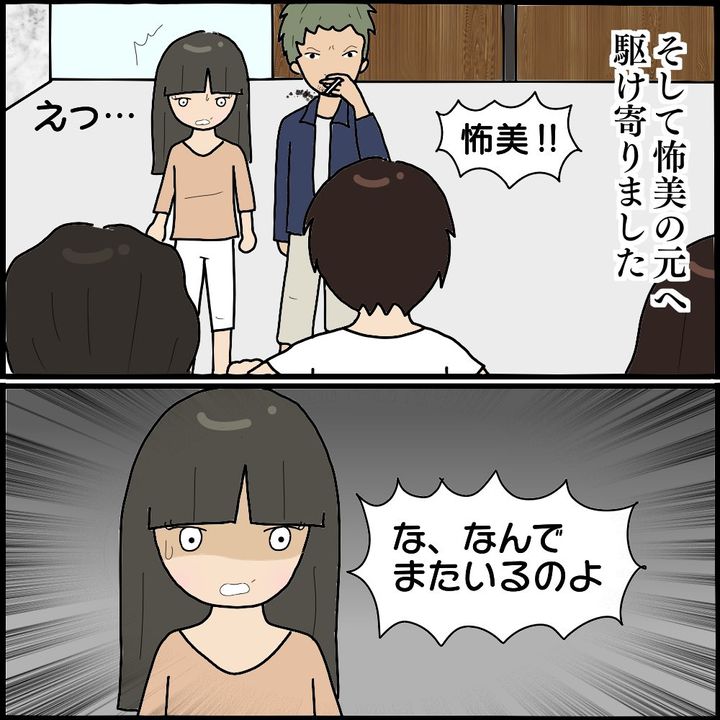 上司から怖美の住む地域を聞き出したK代の夫は、K代と元夫に情報を共有します。そしてついにK代は怖美を発見!さらに尾行を続けると、高級タワマンに住んでいることを突き止めます。