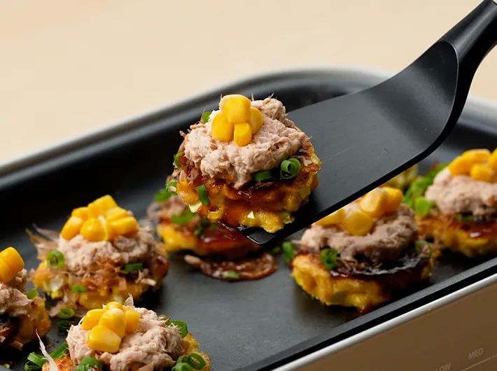 『食パンで作る!シーチキンとシャキッと!コーンのミニお好み焼き』