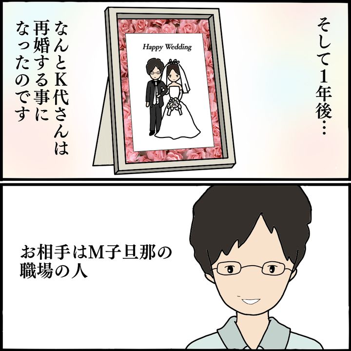 怖美に慰謝料は請求できなかったものの、M子の助言ですべてを終わらせ、新しい人生を歩み始めたK代。