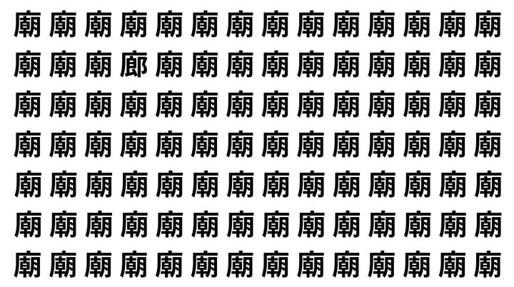 たくさんの「廟」の中に、よく似た別の漢字が1文字だけ隠れています。