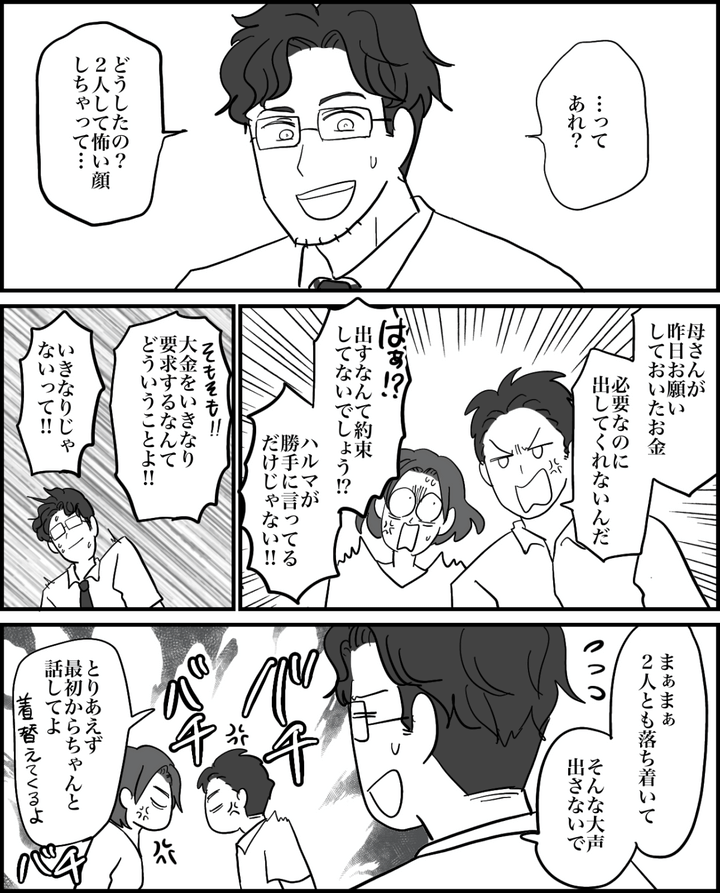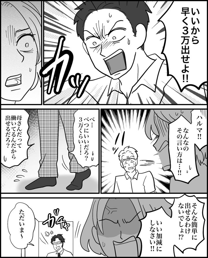 <息子、3万円よこせ?>話合いがヒートアップ。興奮した息子「いいから出せよッ!」【まんが】