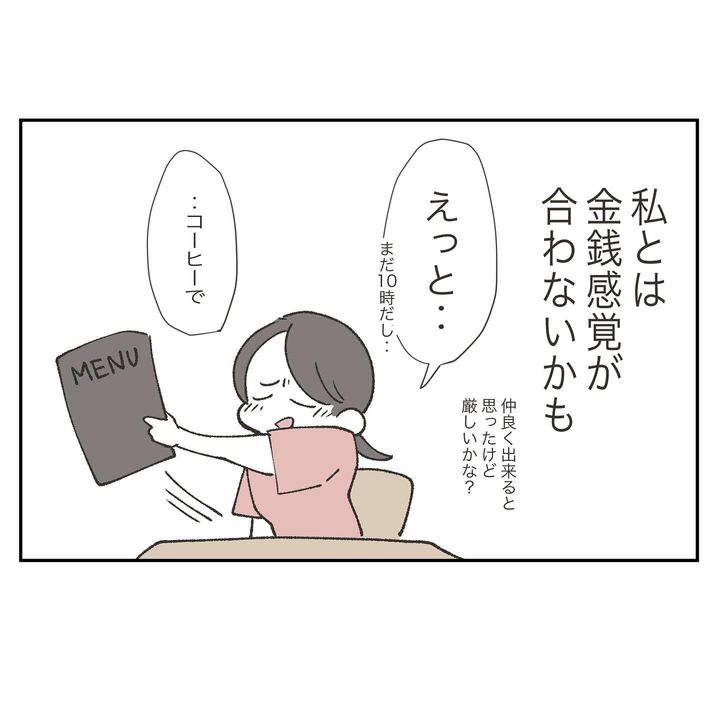 声をかけてくれたクレ子と仲良くなりたい! そう思い、一緒にカフェへ。しかし、そのお店はコーヒー1杯1500円もするお店だったのです。