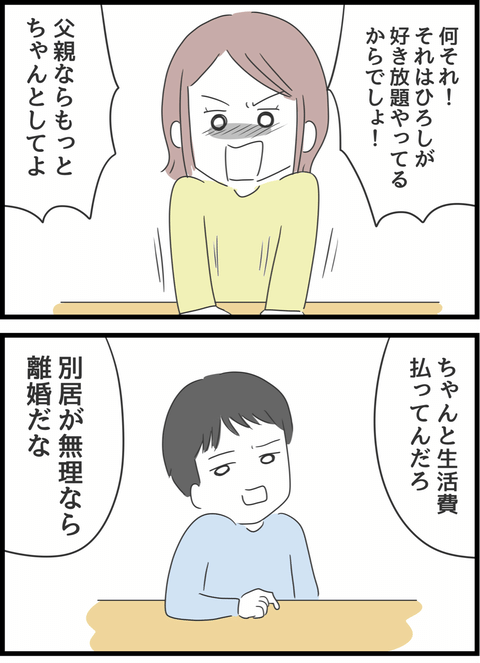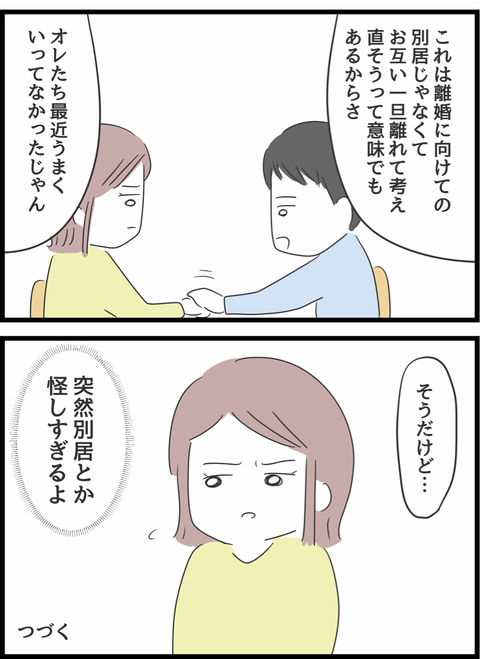 再び浮気をするようになった夫。しかし妻に離婚をする勇気がないことにつけ込み、余裕しゃくしゃくな様子。ついには自由になりたいからと、別居の提案をもちかけるのでした。