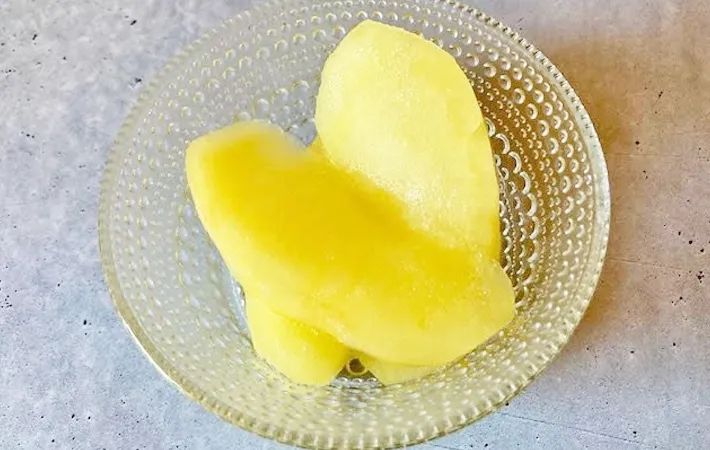 煮上がったリンゴはやや透き通った黄色で、ほんのりレモンの香りがします。