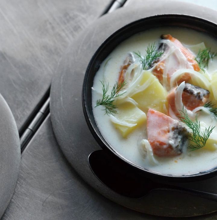 魚料理は手間がかかって難しそう……と思っていませんか? 刺し身や切り身魚を使えば、パパッと短時間で調理ができます。簡単な魚料理をレパートリーに加え、日々の献立にはもちろん、忙しいときや献立に悩んだときにも役立ててください。今回ご紹介するのは、ホワイトソースを使わずに作る『鮭とじゃがいもの北欧風スープ』。ごろりと大きめに切った鮭が主役の一皿です。