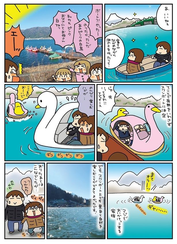 3. 富士山を望む湖でスワンボート。美しい景色やおいしいグルメに癒される!/松本ぷりっつの夫婦漫才旅 ときどき3姉妹 おっぺけまかりとおる編