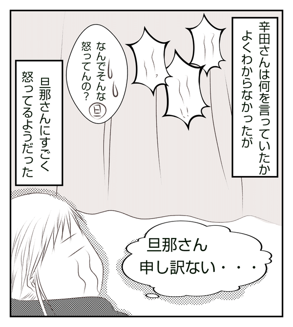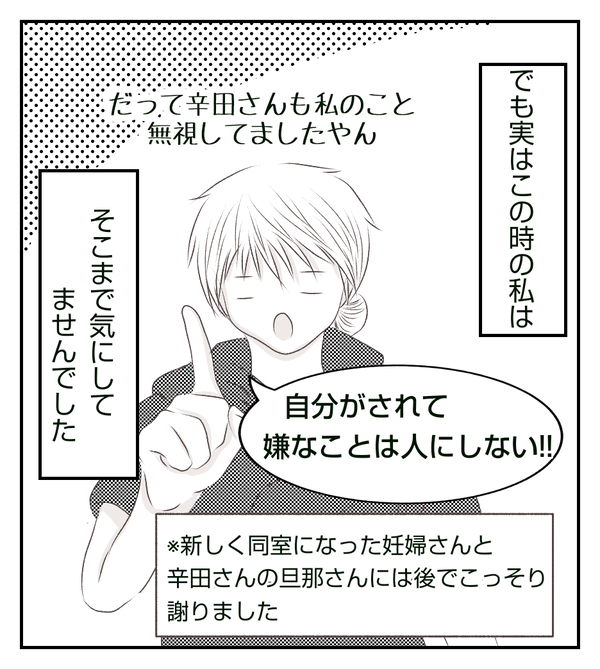辛田さんの旦那さんと新しい同室の妊婦さんには巻き込んでしまって申し訳なく思っていたので、後で個別に謝りました。