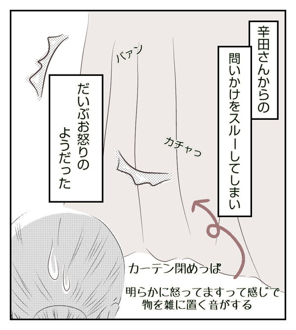 ただ、辛田さんには全く悪いと思いませんでした。辛田さんも私のことを無視していたので…。