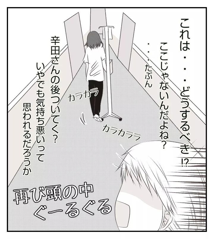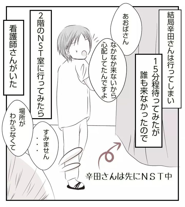 複数あるNST室のどこで検査をするのか分からず、とりあえず同じ階のNST室の前で待っていたあおば。すると同室の辛田が何も言わず前を通り過ぎていき…。