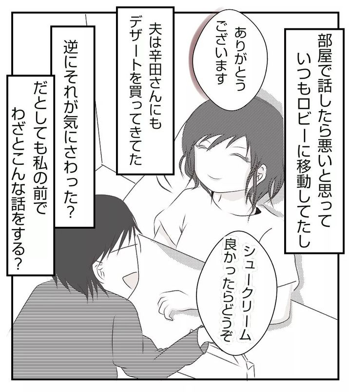辛田さんの旦那さんは仕事が忙しいみたいであまり来られなかったようなので…。なるべく夫とはロビーで会うようにしてはいましたが、そこに関しては申し訳なかったと思います。