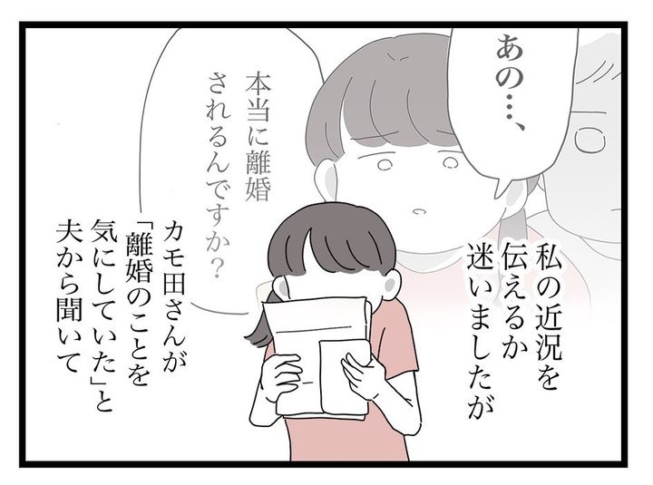 別居し、病院に通っているというクレ子。近況を知ったカモ田さんは、どう感じたのでしょうか…。