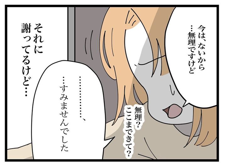 ついにクレ子家を訪問。クレ子がドアを開けた瞬間、簡単にドアを閉められない位置に立った夫は、すぐさま謝罪と返金を要求したのでした。
