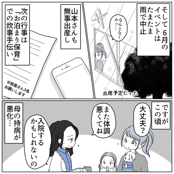 しかし、参加予定ではなかったはずの山本さんが出産直後に参加したと聞き、胸がザワつきます…。