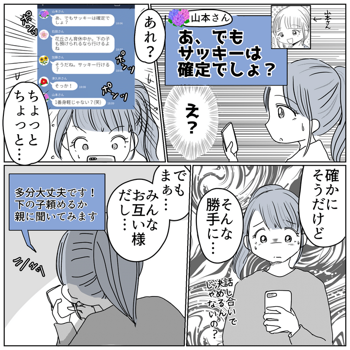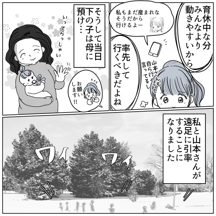 2. 遠足の引率「サッキーは確定でしょ」 強引なメンバー決めにやや不信感…?【保育園クラス役員で理不尽ないじめに遭いました Vol.3】