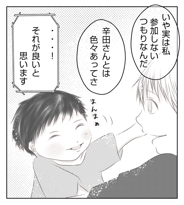 私も入院中の部屋で辛田さんと2人だった時のことや、息子の成長のことを言われたことなどは花野さんに話してはいませんでした。